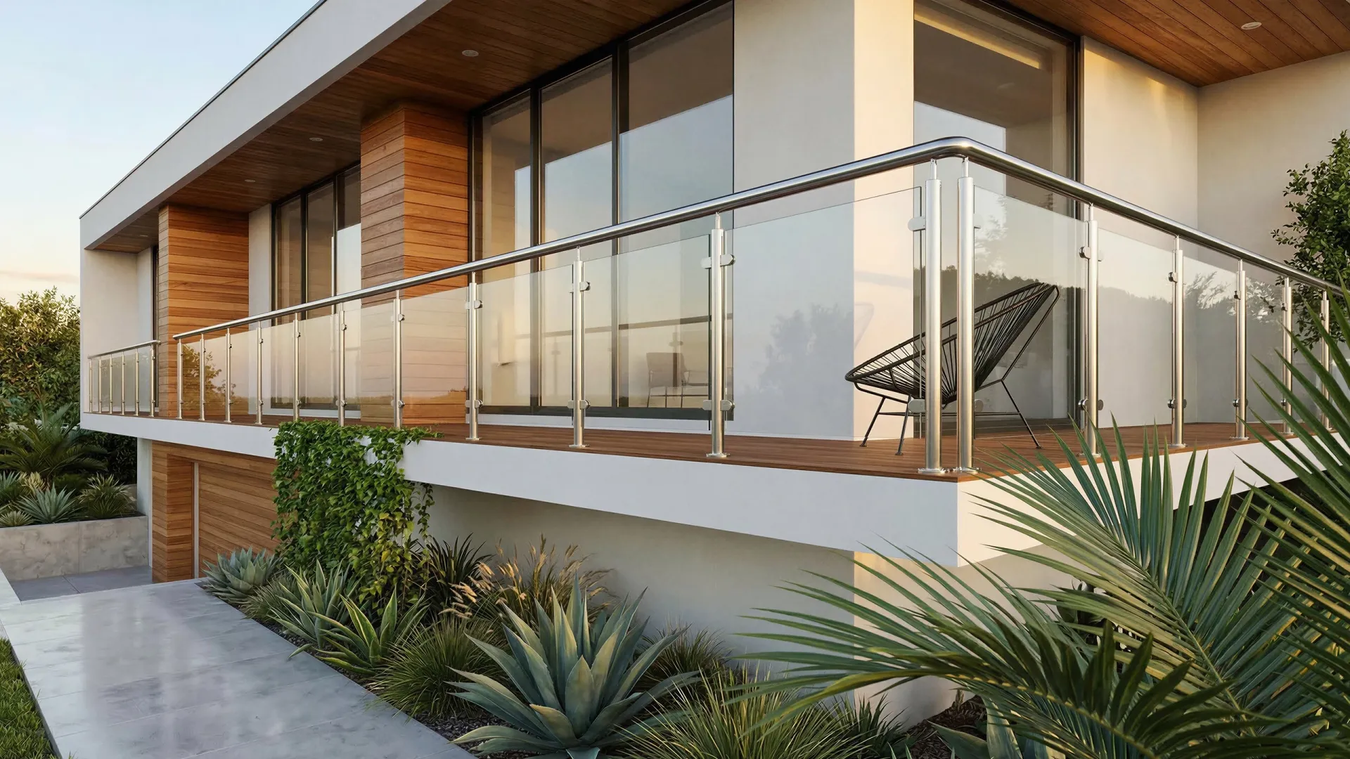 Barandas para balcones, escaleras y terrazas en acero inoxidable y vidrio.
